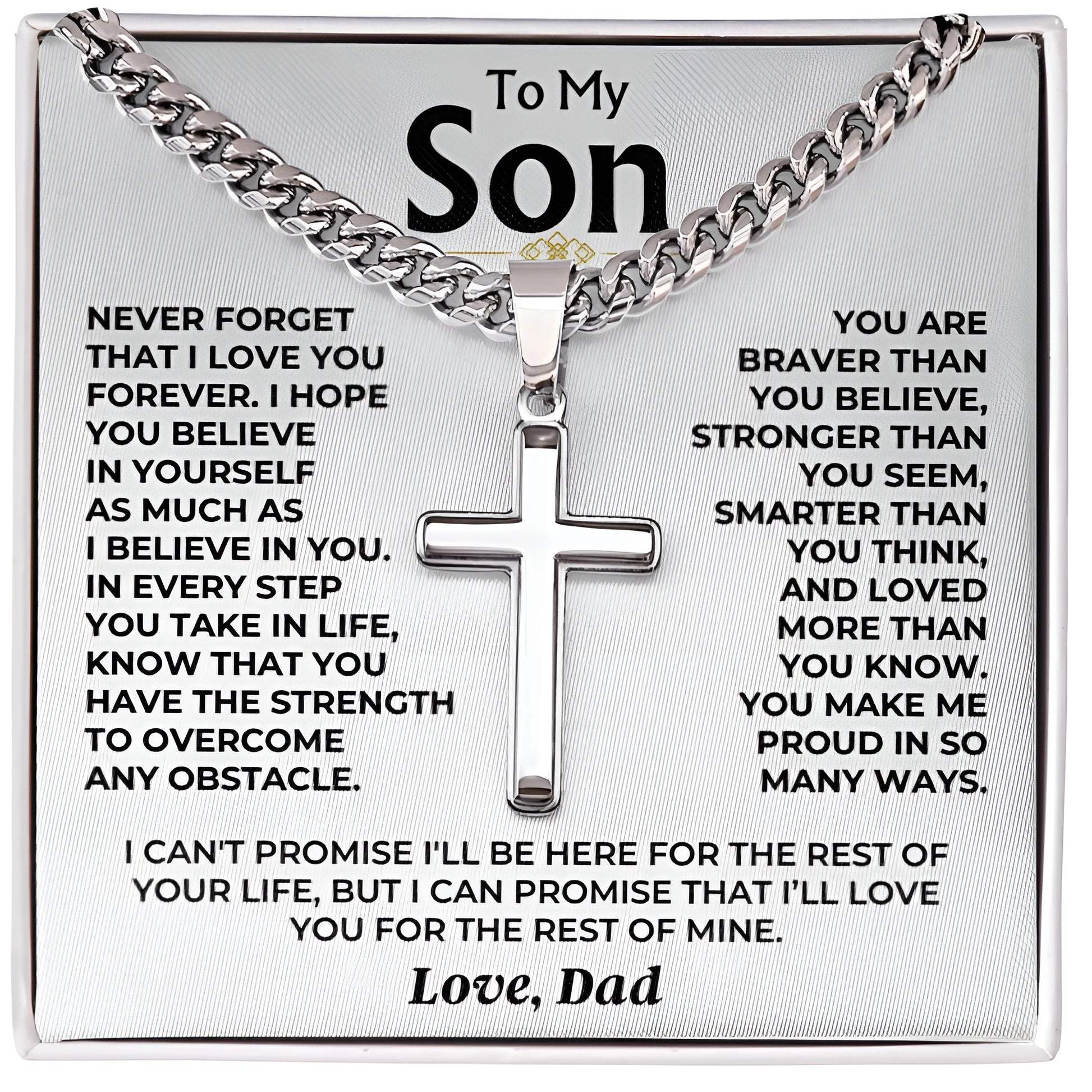 To My Son - Love Dad - Artisan Cross on Cuban Link Chain - Gift Set